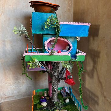Building magical miniature treehouses out of recycled materials over the course of 6 classes.