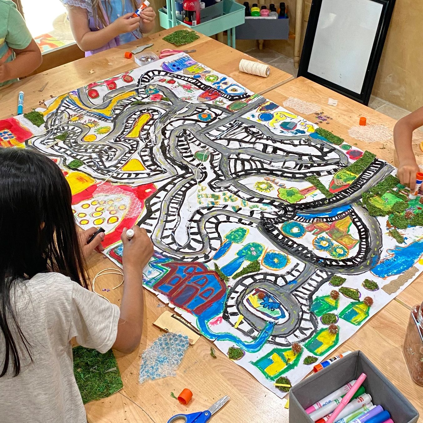 Building miniature houses out of cardboard from start to finish over the course of 8 classes.
